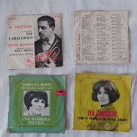 Set di copertine per dischi 45 giri degli anni '60. - Copertina Nini Rosso Il Silenzio - Copertina Peppino di Capri Notte di luna calante - Copertina Orietta Berti Dove, non so - Copertina Iva Zanicchi Come ti vorrei ecc... vedi foto Originali dell'epoca. Solo copertine i dischi non sono inclusi.