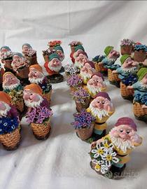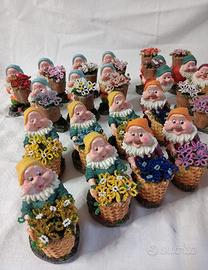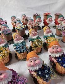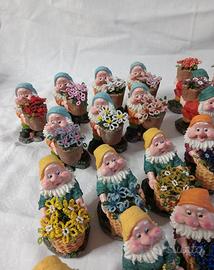 Vendo 37 nanetti da collezione in 7 pose diverse con fiori realizzati con perline in vetro di Murano. Prezzo cad