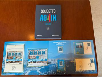 Folder celebrativo scudetti Napoli stagioni 2022-2023 e 2024-2025.