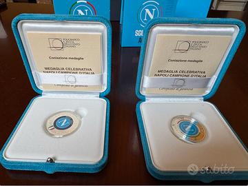 Due astucci con medaglie d'argento celebrative vittoria campionati di calcio serie A 2023 e 2025