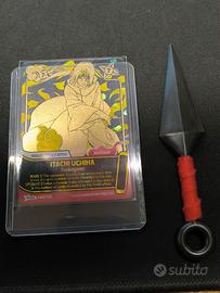 Salve,vendo la carta di Naruto Mythos TCG Secret Itachi Uchiha 140/130. in regalo un piccolo Kunai in plastica.