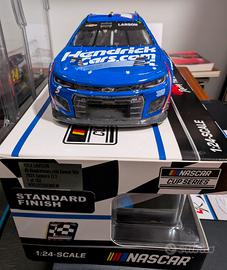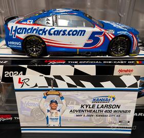 VENDO modello pressofuso scala 1/24 di Kyle Larson vincitore della gara Nascar Cup Series in Kansas City il 5 Maggio 2024. Nella gara più combattuta nella storia della NASCAR, Kyle Larson ha battuto Chris Buescher al traguardo per circa un pollice, aggiudicandosi la AdventHealth 400 di domenica sera al Kansas Speedway. Dopo che il testacoda di Kyle Busch al giro 261 di un giro previsto di 267 ha mandato la gara ai supplementari, Buescher ha preso il comando alla ripartenza dello sprint di due giri, salvo poi essere raggiunto da Larson sul rettilineo opposto all'ultimo giro. La Chevrolet numero 5 di Larson e la Ford numero 17 di Buescher si sono toccate due volte sul traguardo. Buescher è rimasto in testa a un passo dalla vetta, ma Larson è riuscito a superarlo al fotofinish, vincendo con un margine di soli 0,001 secondi. Per Larson si è trattato della seconda vittoria stagionale, la seconda a Kansas e la venticinquesima in carriera. Per la Hendrick Motorsports, questa vittoria rappresenta la sesta stagionale, il numero più alto finora nella NASCAR Cup Series. "È stato pazzesco", ha detto Larson, che era scivolato dal secondo al quarto posto prima del testacoda di Busch. "Ovviamente sono stato grato per la bandiera gialla. Stavamo andando alla grande. Ero contento di uscire terzo (dai box) e ho pensato che la mia migliore possibilità fosse quella di scegliere la traiettoria interna e provare a infilarmi tra tre vetture all'interno. Modello come nuovo tirato fuori dalla sua scatola originale solo per fare le foto. Scatola originale e certificato di autoteticità inclusi. VENDO ad 90 euro non trattabili. Astenersi perditempo ed affaristi.