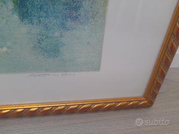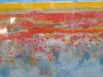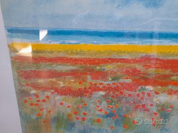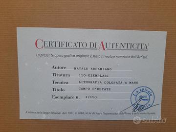 Natale Addamiano"Campo D'estate "Litografia colorata amano,con certificato.Serie 1/150 misure 106×77 cornice in legno