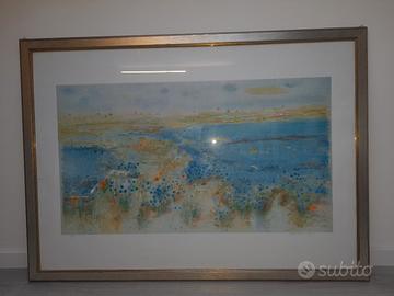 Natale Addamiano "Campo Di Lino" Litografia originale ,con certificato serie 45/150 misurex106×77 Cornice in legno