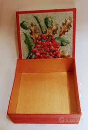 Natale - scatola decorata decoupage a mano Cartoncino Cm 17x17x7 NUOVA