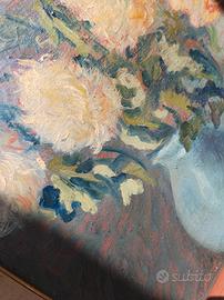Soggetto: Composizione floreale con vaso azzurro, riconducibile alla corrente post-impressionista del Novecento.