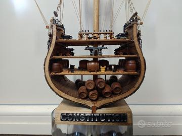 riproduzione in scala e in sezione della famosa fregata americana... riprodotto interamente a mano con materiali di qualità, il rivestimento e in noce, quindi no kit in scatola ma pura falegnameria. pezzo da collezione unico.