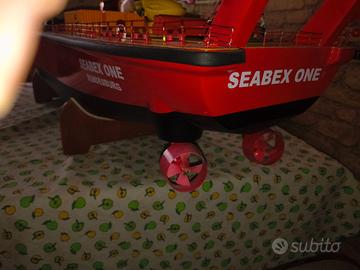 vendo barca r/c graupner sebex one montata mai usata con elicottero r/c funzionante con 4 motori sterzanti 4 regolatori brushed 60amp 4 motori brushed 2 servi, radio 2.4ghz mancano 2 batterie 12v piombo per alimentarla e zavorrarla completa accessori lunga 1450mm alta 260mm larga 73mm 5kg non spedisco visto la grandezza