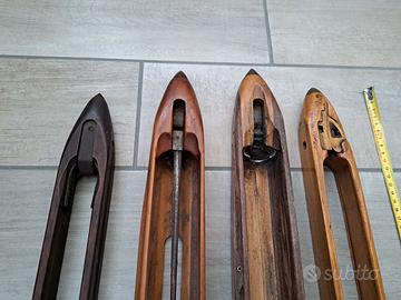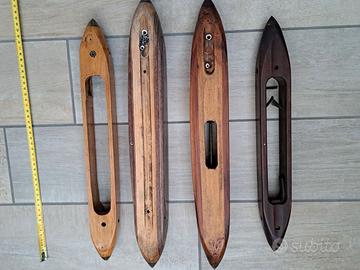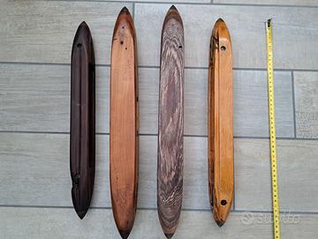 Sono in legno, di forma allungata, presentano segni del tempo e dell'uso. Ideali per appassionati di tessitura, o per esposizione, come articolo decorativo stile industrial.