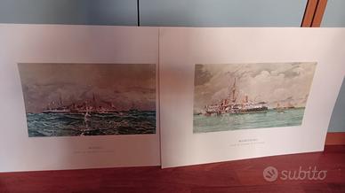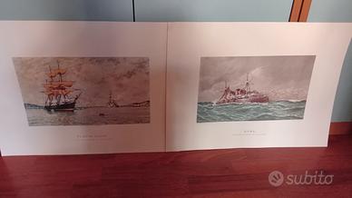 Ve do 8 tavole ad acquarelli di E.De Martino, che illustrano navi della Marina Militare
