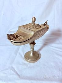 Vendo rara navicella da prete antica risalente alla prima metà del XIX secolo. Veniva utilizzato nelle celebrazioni religiose per contenere l’incenso prima della sua combustione nel turibolo. La forma ricorda volutamente quella di una piccola imbarcazione, a richiamare la "nave" della Chiesa e la spiritualità del viaggio dell’anima.