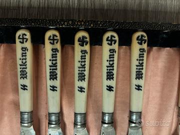 Oggetto storico di epoca Terzo Reich, destinato a uso privato o cerimoniale, decorato con simbologia SS. Testimonianza materiale della vita quotidiana nell’epoca.”
