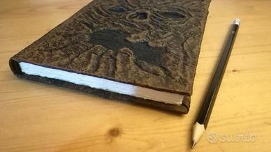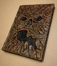 Libro dei Morti/Necronomicon ispirato a La Casa e L'Armata delle Tenebre. Questi taccuini sono fatti a mano, dipinti con colori acrilici, rilegati artigianalmente, con pagine avorio e finitura opaca protettiva. Perfetti come oggetti di scena o decorazioni, o semplicemente per pronunciare le parole "Klaatu Varada Nikto" tenendoli tra le mani.