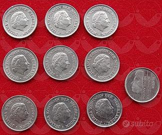 ==NEDERLAND anni 1950-1979 lotto di 9 monete da 25 Cent Olanda-Dutch cent