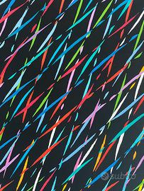 Piero Dorazio (Roma, 1927 – Perugia, 2005) è stato uno dei massimi rappresentanti dell’astrattismo europeo. L’esigenza di sottrarre l’arte da qualsiasi riferimento naturalistico e dalla funzione sociale che fino a quel momento l’aveva caratterizzata, porta alla formazione nel 1947 del Gruppo Forma 1, che Dorazio dirige insieme a Carla Accardi, Ugo Attardi, Pietro Consagra, Mino Guerrini, Achille Perilli, Antonio Sanfilippo e Giulio Turcato. La volontà del gruppo è quella di svincolare l’arte da una dimensione psicologica o realistica, associandola al criterio di struttura con un’attenzione particolare al segno e alla forma quale elemento unico di espressione. Questi i principi saranno alla base di tutta la produzione di Dorazio. L’artista, infatti, trova una chiave di lettura dell’arte astratta, affermando che il quadro astratto non rappresenta altro che sé stesso, poiché costituito da elementi della visione.