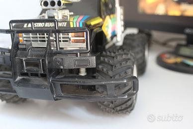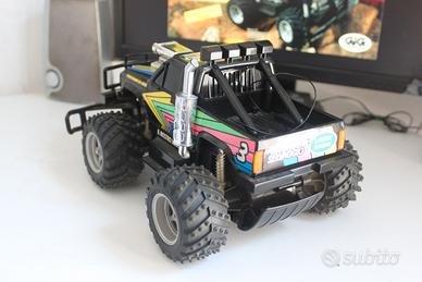 Macchina radiocomandata del 1991, viene venduta priva del suo telecomando, usata con minimi segni e in buone condizioni generali. Modello di mia collezione personale, raro da trovare con la livrea e la scritta in Italiano BRONCO SELVAGGIo, era venduta all'estero con il nome di Black Thunder, tra i primi modelli con effetti luci e suoni. Modellino da collezione, funzionante ma venduta senza nessuna garanzia, vista e piaciuta.