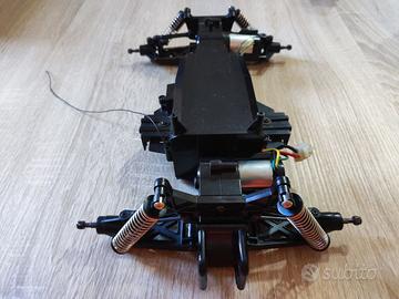 Telaio completo per Nikko Dictator e Dictator 2, completo di scheda elettronica e motori, il tutto è stato testato ed è funzionante, da segnalare il motore anteriore come si vede dalle foto ha i perni di fissaggio rotti e forza un pò quando gira. Vedere tutte le foto. Ottimo come ricambi o restauro.