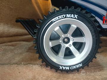 Nikko Mad Hawk, modello metà anni novanta in scala 1:10 quindi molto grande (52 cm). La macchina è stata pulita e lubrificata e si presenta in condizioni pari al nuovo, segni di utilizzo da cercare con attenzione perché lievissimi, indubbiamente usata una o due volte non di più. Ruote e gomme stupende, radiocomando perfetto, funziona benissimo, monta un Mabuchi 380 SH con sterzo proporzionale. La macchina sarà venduta con la battery pack da 9,6 volt originale e con una batteria 9 volt per il radiocomando quindi pronta a correre! Bellissima e imponente in una vetrina ma perfetta per giocare su una strada sterrata, in ogni caso da collezione. Disponibile un video x chi fosse volesse. Spedizione disponibile.