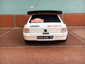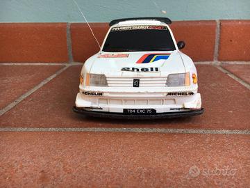 Come titolo vendo Nikko Peugeot 205 T16 in scala 1/16, perfettamente funzionante. L'auto è in buone condizioni, con segni sia sulla carrozzeria che sul telaio, gli adesivi sono rovinati in diversi punti come da foto. L'auto funziona perfettamente in tutte le sue funzioni, marcia avanti, indietro, sterzo e turbo.