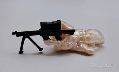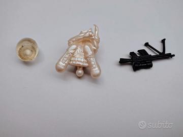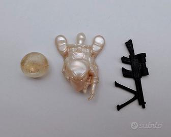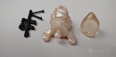 Pezzo della collezione Ninja Kombattini, prodotto dalla GIG negli anni '80. Il personaggio è Zengolo il Mitragliere nella ricercata variante Bianco Perlato (Serie Ninja). Il set è completo al 100% e comprende: Personaggio Zengolo (plastica perlata in ottime condizioni, non appiccicosa). Fucile/Mitragliatore nero originale (innesto integro). Ampolla della Forza (sfera trasparente originale). Condizioni ottime, come da foto.