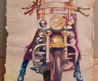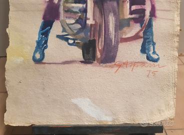 Opera senza titolo del maestro Antonio (Nino) Gasparri (Bari 1910-1989), raffigurante motociclista e realizzata presumo su carta/cartoncino artistica per acquerelli a grana grossa.