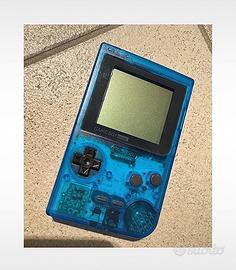 Console portatile Nintendo GameBoy Pocket originale, è stata sostituita la scocca con una blu trasparente perché quella vecchia era distrutta.
