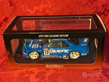 Splendido modellino in scala 1:18 della Nissan Skyline R34 con livrea Calsonic, iconica vettura del campionato JGTC 2002. Prodotto da AUTOart, questo modellino è nuovo, con carrozzeria sigillata e scatola originale in condizioni perfette. Un must per i collezionisti di auto da corsa giapponesi e fan della leggendaria livrea Calsonic