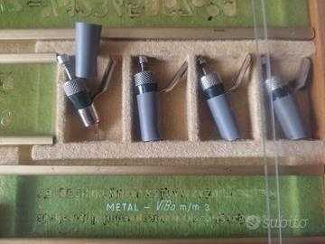 Scatola in legno con n. 4 normografi mm 10 - 7 - 5 -3 con 4 pennini (di cui uno rotta la punta)
