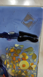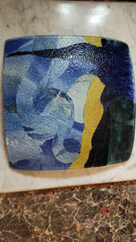 centro tavola in vetro tributo all'artista Van Gogh, realizzato a mano con la tecnica della vetrofusione.
