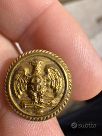 Questi sono due bottoni storici italiani risalenti al ventennio fascista (circa 1922-1943). Si tratta di esemplari comuni ma molto interessanti per la loro simbologia. Ecco il dettaglio : 1. Bottone con Fascio Littorio (Prima foto) Questo bottone raffigura il fascio littorio, il simbolo principale del regime fascista, ispirato all'antica Roma. • Utilizzo: Era un bottone "generico" o politico, spesso utilizzato sulle uniformi della MVSN (Milizia Volontaria per la Sicurezza Nazionale), meglio conosciuta come le "Camicie Nere", o su divise di organizzazioni giovanili/civili del regime. • Materiale: Solitamente ottone o "frutto" (una lega economica) dorato. 2. Bottone con Aquila e Scudo Sabaudo (Seconda foto) Questo è un bottone militare ufficiale del Regio Esercito Italiano. • Simbologia: Mostra l'aquila ad ali spiegate che reca sul petto lo scudo crociato dei Savoia (la casa regnante all'epoca). Sotto l'aquila si intravede spesso un fascio orizzontale, a conferma dell'integrazione dei simboli del regime in quelli dello Stato. • Utilizzo: Era il bottone standard per le giubbe da ufficiale o sottufficiale del Regio Esercito durante la Seconda Guerra Mondiale.