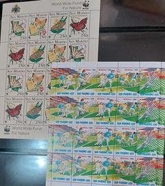 (nu53/57b)San Marino 77/98+MF 93/98 (nu53)San Marino foglietto 77 Francobolli euro 3,50-84 Olimpiadi euro 0,50-86 Arte Cinema euro 1- 88 Olimpiadi euro 0,75 (nu54)San Marino 90 Calcio euro 1,3-91 Nuova Europa euro 1,3-93 Villaggio Europa euro 1,9-94 Olimpiadi euro 1,50 (nu55)San Marino 96 Canzone euro 2-96-Natale euro 2,50-97 Fumetto euro 3 (nu56)San Marino 97 Auto Volkswagen euro 0,60-98 Auto Ferrari euro 2,5-98 Fantascienza euro 2,80 (nu57)San Marino Minifogli 93 Farfalle 3 valori euro 2-94 Sport 5 valori euro 1,50 (nu57a)San Marino Minifogli 95 Natura 5 valori euro 2,40-95 Marconi 2 valori euro 2-95 Cinema euro 9 (nu57b)San Marino Minifogli 98 Diritti 2 valori euro 0,5-98 Natale 4valori euro 0,8 (nu53/57b)Blocco dei 14 foglietti e 7 mini-fogli (prezzo di vendta 117 euro) a euro 40
