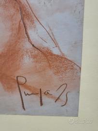 Vendo Quadro comprato da mio zio negli anni 70 ad un asta, da come si vede eseguito con matita sanguigna, non riesco a decifrare l'autografo, non conosco l'autore, con vetro, misure con cornice 30 x 40 e senza cornice 21 x 31 , non l'ho aperto ma penso sia su foglio da disegno. Ritiro a mano o spese di spedizione a vostro carico.
