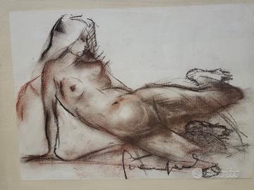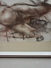 Vendo Quadro comprato da mio zio negli anni 70 ad un asta, da come si vede eseguito con matita sanguigna, non riesco a decifrare l'autografo, non conosco l'autore, con vetro, misure con cornice 32 x 41 e senza cornice 22 x 31 , non l'ho aperto ma penso sia su foglio da disegno. Ritiro a mano o spese di spedizione a vostro carico.