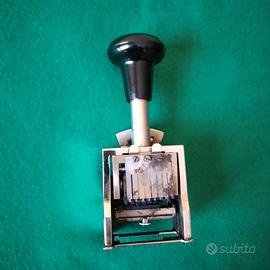 Timbro numeratore in metallo autoinchiostrante a 6 cifre con ripetitore da 0 a 4 (O timbra sempre lo stesso numero; 4 ripete lo stesso numero quattro volte prima di passare al numero successivo, le altre posizioni sono intermedie)
