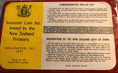 1971 Nuova Zelanda set di 7 monete emesse dal Tesoro della Nuova Zelanda 1971 New Zealand coins Uncirculated coin set special issue for collectors made by the Royal Mint, London set di 7 monete 1971 coniate dalla Royal Mint di Londra 7 monete: 1 dollaro, 50, 20,10,5, 2,1 cent Fior di conio Nella custodia di plastica originale ottimamente conservata