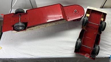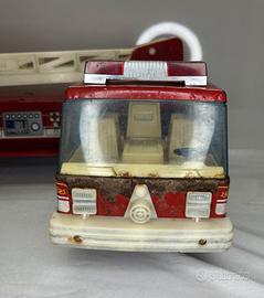 Nylint Hook & Ladder 75 Foot – Engine Co. 1 Camion dei pompieri vintage Made in U.S.A. Modello in metallo (die cast e lamiera stampata) di grandi dimensioni: Lunghezza circa 80 cm Altezza circa 20 cm Completo di scala originale e struttura girevole. Condizioni: – Segni di usura e vernice mancante nella parte anteriore – Presenza di ruggine superficiale in alcuni punti – Adesivi parzialmente consumati – Ruote presenti e scorrevoli – Strutturalmente completo Oggetto vintage anni ’70 circa, ideale per collezionisti di giocattoli in latta/metallo americani. Venduto come da foto. Spedizione accurata vista la dimensione importante del modello.