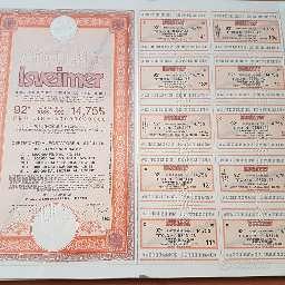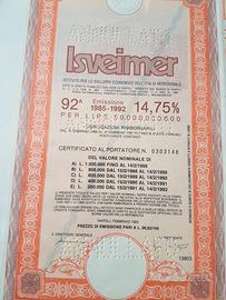 Vendo certificato obbligazionario originale dell'ISVEIMER 1985-1992 92esima emissione tasso fisso 14,75% al portatore. Titolo emesso nel Febbraio 1985 , mantello completo di foglio cedole . Vera chicca per scripofili. Disponibile a ulteriori chiarimenti e/o foto; privilegio ovviamente la consegna a Milano e tutte le eventuali spese di spedizione sono a carico acquirente. Non spedisco in contrassegno ma, eventualmente con piego libri . Prezzo non trattabile.