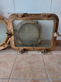 Come da foto nr 3 oblò di diverse misure e bozzello da carico, tutti pezzi da ricupero navale originali acquistati in giro per l Italia. Vendo in blocco. € 3000