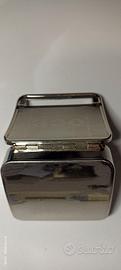 OCB Automatic Rolling Box Silver Cigarette Roller Box Metal Pratico strumento per rollare le sigarette con tabacco trinciato in modo automatico e veloce. - Design elegante con motivo geometrico. - Marchio OCB inciso sulla parte superiore. - finitura argento. In buone condizioni, funzionante. L'oggetto è usato e viene venduto nello stato in cui si trova, come descritto e mostrato in foto. Trattandosi di vendita tra privati, non è prevista garanzia né restituzione per ripensamento, in conformità con le regole della piattaforma.
