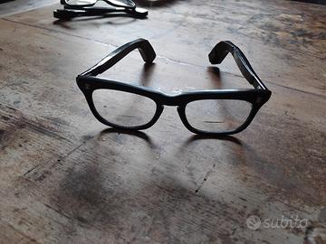 occhiali acustici anni 60 con stile tipico dell'epoca - ausilio a sinistra, lenti bifocali. bell'oggetto da collezione o esposizione
