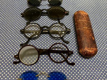 Occhiali da vista, correttivi e da Sole con lenti tonde ed ovali, d'epoca e da collezione risalenti all'800, unico proprietario nonché di mio trisavolo, tenuti in buone condizioni tenendo presente che hanno 200 anni, sono in ottime condizioni generali non presentano rotture.