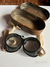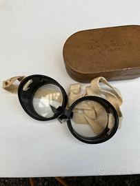 occhiali da guida James Murray & Co Ltd nella custodia da viaggio originale in metallo datata 1942 seconda guerra mondiale