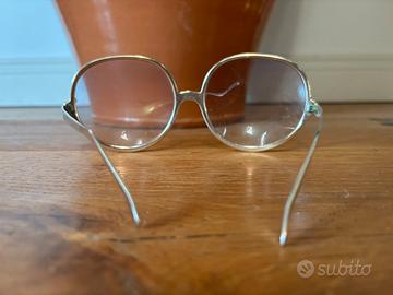 Occhiali da sole vintage con montatura dorata. - Montatura in metallo dorato. - Lenti trasparenti. - Logo Polaroid e frame USA. - Anni ‘60.