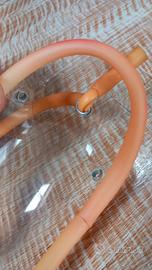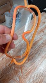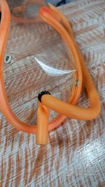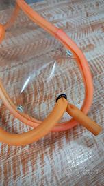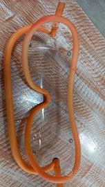 Vendo rari occhiali protettivi vintage dal design unico e iconico, risalenti probabilmente agli anni '70/'80. Caratterizzati da una montatura ultra-leggera composta da un tubo flessibile in lattice arancione (stile laccio emostatico/fionda) che garantisce un'aderenza perfetta e un look futuristico/industriale. Condizioni: Ottime condizioni vintage. La gomma è ancora elastica e non appiccicosa. Lente panoramica in policarbonato con leggeri segni del tempo che non compromettono la visuale. Stile: Perfetti per collezionisti di modernariato, appassionati di estetica Cyberpunk, Steampunk o come accessorio per shooting fotografici e costumi cinematografici. Dettagli: Struttura fissata con rivetti metallici originali. Taglia unica regolabile tramite i nodi del tubolare