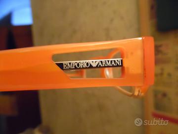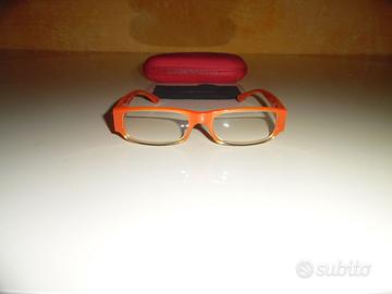 OCCHIALI COME NUOVI DA DONNA con lenti DA VISTA originali con contenitore porta occhiali e straccetto/pezza/fazzoletto in stoffa nero pulisci occhiali tutto COME NUOVO E ORIGINALE E SENZA DIFETTI FIRMATO ORIGINALE:"EMPORIO ARMANI"by GIORGIO ARMANI MADE IN ITALY CE(vedi foto),>140,modello 140 EA 9373 NIH,Con scritta laterale (Emporio Armani) su una bacchetta di metallo argento,Occhiali con montatura in plastica arancio con il lato sotto le lenti trasparente (vedi foto),NESSUNA ROTTURA E LENTI COME NUOVE,VENDO CAUSA CAMBIO GRADAZIONE LENTI E CAMBIO MODELLO DI OCCHIALI.