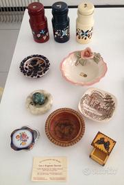 10 pezzi tra cui 1 set di tre barattoli di diversi colori, posacenere in ceramica, scatoline, vasi