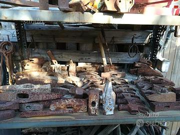 Attrezzature da lavoro antiche: forme per scarpe, asce, martelli, chiavistelli, fermaporte ecc.