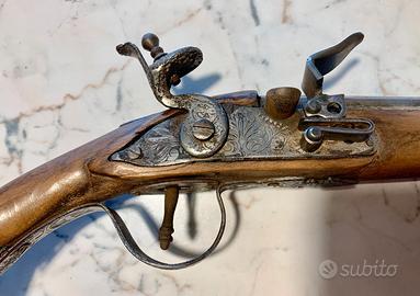 oggetti antichi solo a scopo decorativo Repliche modelli di: 1 polverino 1 fiasca 3 fucili 3 pistole Chiedere per altre foto