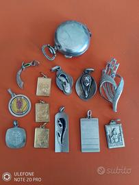 offro diversi piccoli oggetti in argento come da foto allegate. argento 925 gr.37,20 argento 809 gr. 81,11 per un totale di gr. 118,31 euro 120 + spedizione con tutto subito il porta pillole a forma di orologio cipolla presenta una piccola ammaccatura