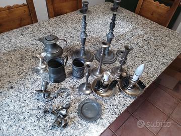 vendo stock di oggetti della bisnonna in peltro, non sono tutti perfetti, ma a chi piace può anche fare piacere. Io non ho più posto, ma li terrei per ricordo se potessi. Sono come da foto, se qualcuno volesse dei particolari, mi scriva.